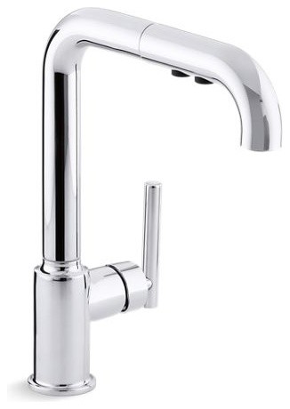 Pulldown faucets are similar to pullout faucets. However, only the faucet head pulls away from faucet body for maximum control of water stream. All of these one-handle faucets are handle clocked to prevent backsplash crashing. Select models feature MotionSense with two electronic sensors for hands-free operation. Best pull-out faucet: Moen Arbor Spot Resist Stainless One-Handle High Arc Pull-Out Kitchen Faucet Best commercial-style faucet: Kohler Sous Pro-Style Single Handle Pull-Down Sprayer Faucet Prices ... Find kitchen faucets at Lowe's today. Shop kitchen faucets and a variety of kitchen products online at Lowes.com. Kitchen faucets with pull-out sprays are highly versatile, offering